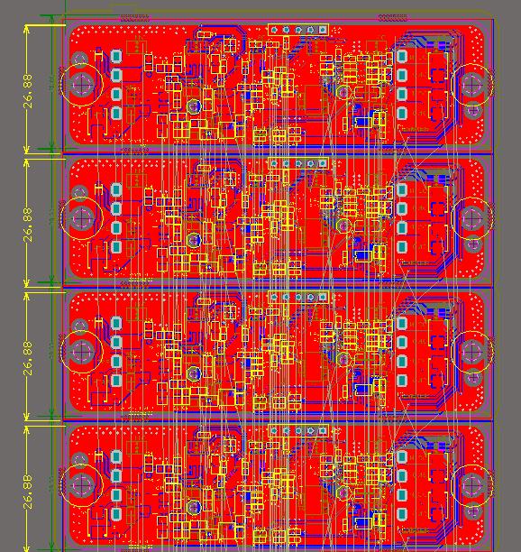 PCB拼板的外框(夾持邊)應(yīng)采用仔細(xì)考慮,確保PCB拼板固定在夾具上以后不會變形(一般不允許在這個(gè)邊上開V槽)對于元器件的布置,第一所有的朝向要一致,不能出現(xiàn)鏡像這樣的情況,這樣會引起加工的坐標(biāo)定位問題。